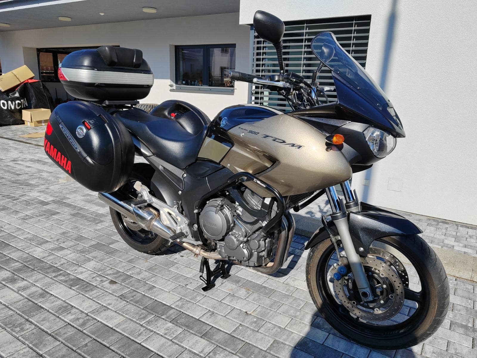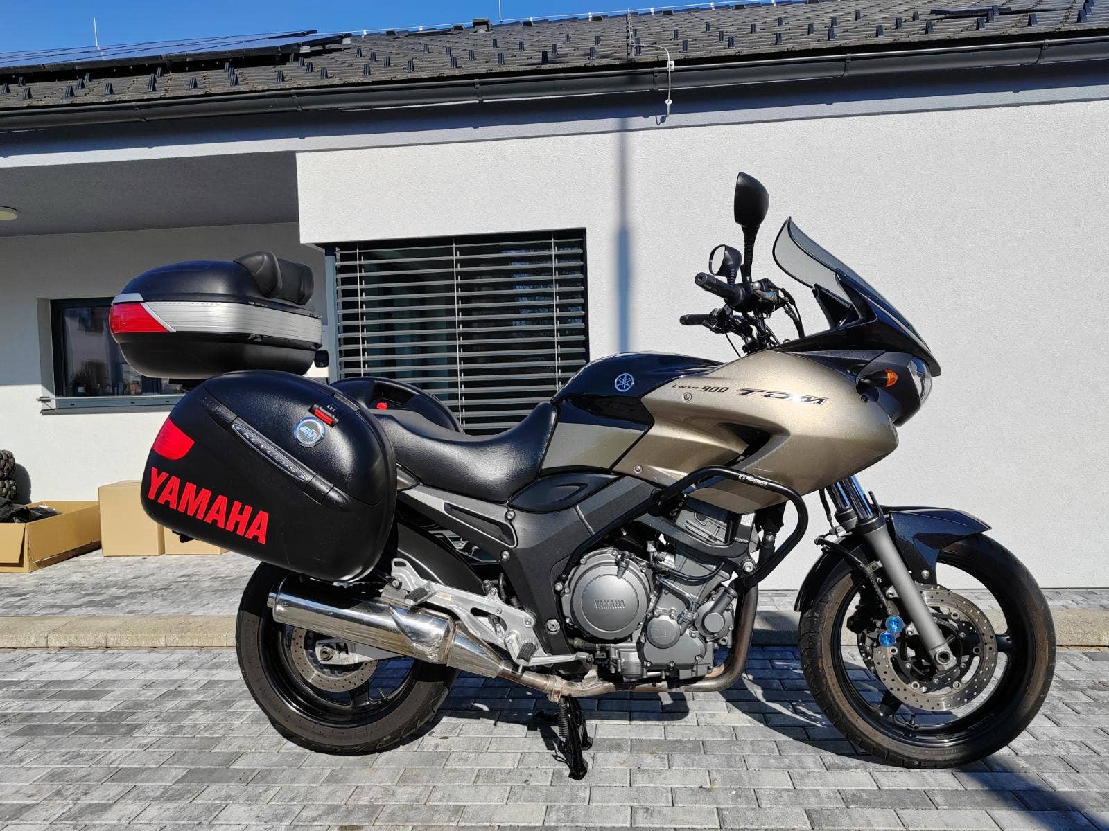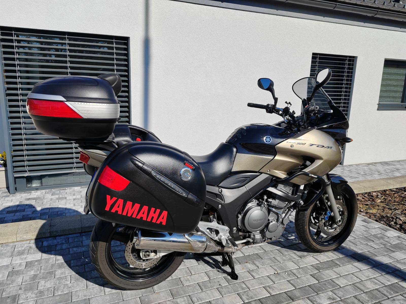 6.5.2005,3xklíče, najeto 60000 km, dovoz do ČR 12.5.2021, přední pneu 100%, není na fotce, zadní 90%, řetězová sada 98%, výbava 3xkufr, držák na mobil, centrální stojan, plexi, padáky